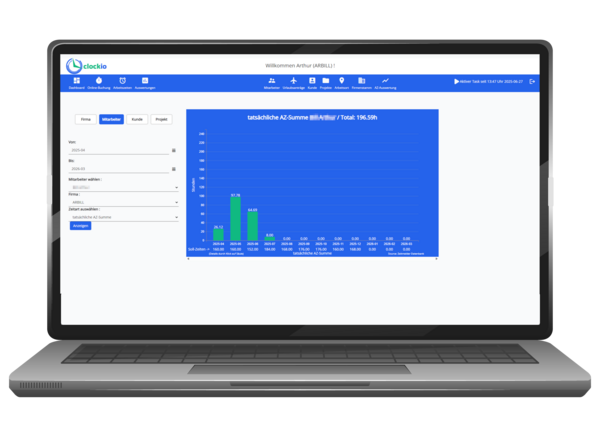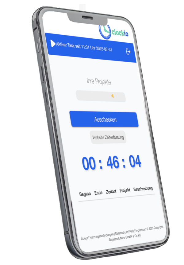 Unsere Web-App “Clockio” ist ein für den Endbenutzer einfach und intuitiv zu bedienendes, beliebig skalierbares System zur digitalen Zeiterfassung, die sowohl für kleine Betriebe mit nur wenigen Mitarbeitern als auch für mittelständische Unternehmen schnell und problemlos einsetzbar ist.
