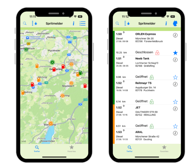 - automatische Preisanzeige für ihre favorisierten Tankstellen